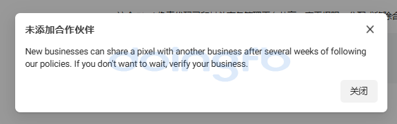 没办法 你这是bm太新了。看能通过合作伙伴那添加么 先添加合作伙伴 再分享像素